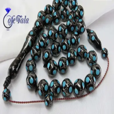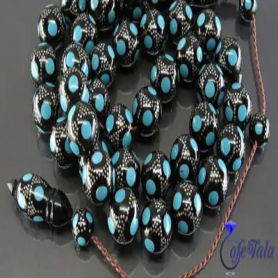 تسبیح کوک کشکول 33 دانه نقره کوب مرصع کاری فیروزه مناسب خانم ها و آقایان می باشد و تقریبا ۴۷ گرم بوده و ۲۵ سانتی متر می باشد. همچنین امکان وجود شجر به دلیل طبیعت دانه ها بر روی برخی از دانه ها وجود دارد. شما می توانید انواع تسبیح فیروزه را از فروشگاه کافه طلاخریداری نمایید.