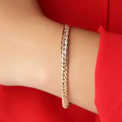 دستبند تمام طلای حصیری با توجه به نوع طرح خاص و زیبای آن به راحتی و آسانی با هر نوع لباسی از جمله لباس رسمی، لباس اسپرت و... ست شده و مناسب آن است. پس با خرید یک دستبند طلای خاص می توانید آن را به عنوان اکسسوری در هر زمان و مکانی و با هر پوششی استفاده کنید.